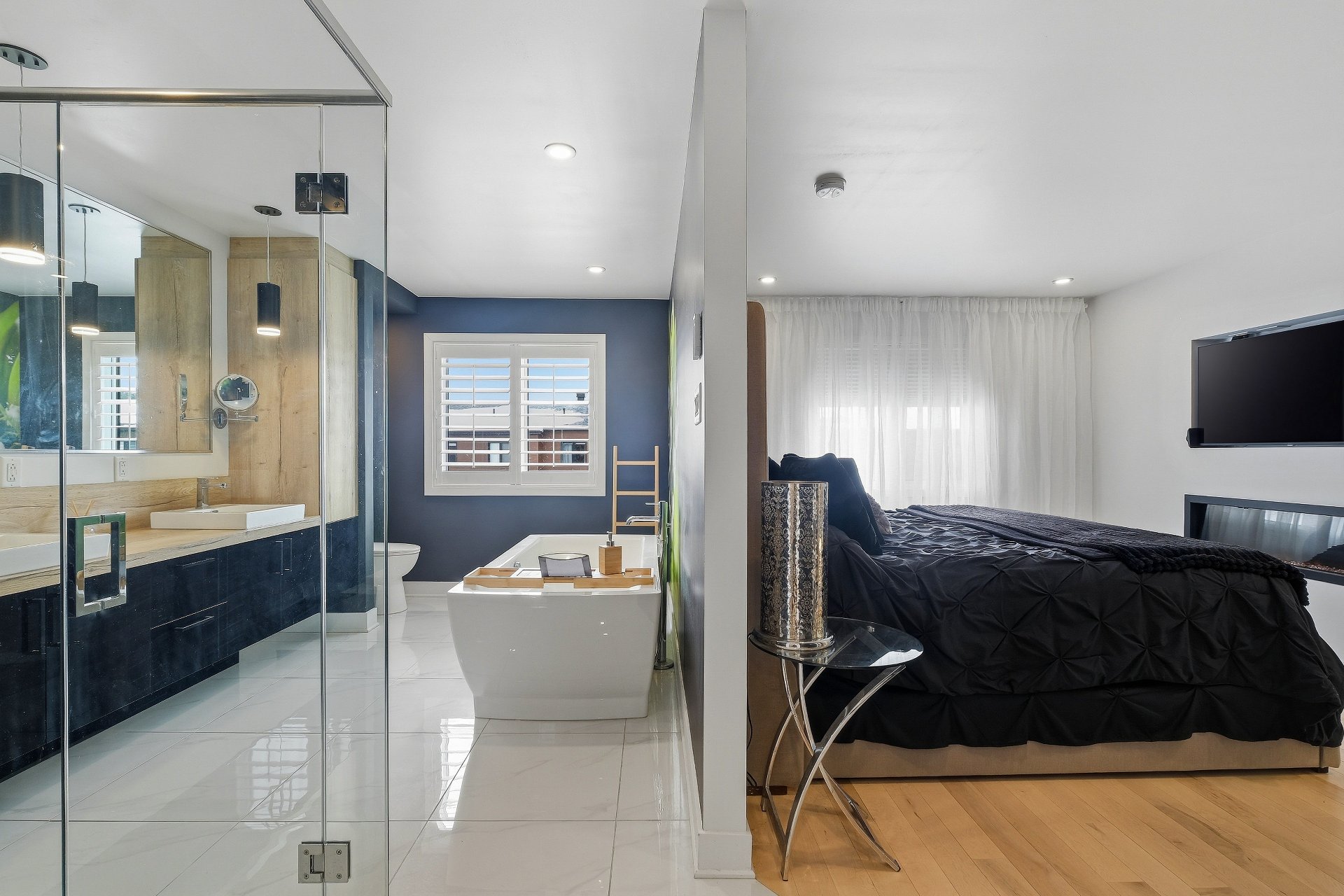 Une propriété d'exception. Tout dans cette maison de ville sur coin vous charmera. Chaque détail a été pensé, maximisé et optimisé pour offrir un confort de vie remarquable. Elle est entièrement clé en main. L'entrée s'ouvre sur un magnifique foyer double face au gaz naturel, créant une ambiance chaleureuse. La luminosité du rez-de-chaussée est exceptionnelle grâce à une fenestration presque mur à mur. Le plancher de bois s'agence harmonieusement avec le plancher chauffant de la cuisine haut de gamme, avec îlot en quartz et cuisine secondaire discrète. À l'étage, suite principale digne d'un hôtel 5 étoiles. lisez la suite à l'addenda...