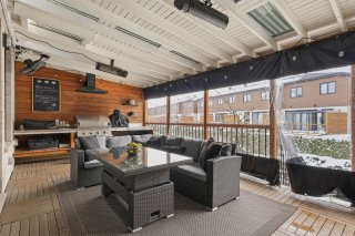 La propriété se distingue également par sa vaste terrasse couverte, presque 4 saisons, d'environ 20,5' x 12', véritable prolongement de l'espace habitable. Protégée et conviviale, elle offre un cadre idéal pour recevoir et profiter de l'extérieur, avec une sortie au gaz naturel déjà en place pour un espace de cuisson.